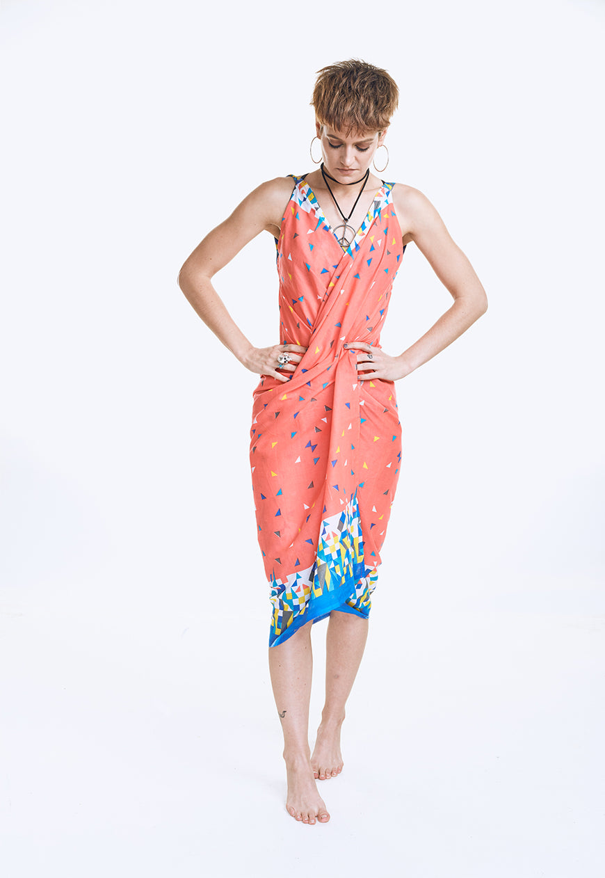Why should I be proud to wear the dress: A Secret Sari Dress is a simple, yet gorgeous dress made from a sari, that can be worn on the beach, at a festival or party as well as at home and in the garden. Made by young women who without an income can be a target for trafficking gangs.